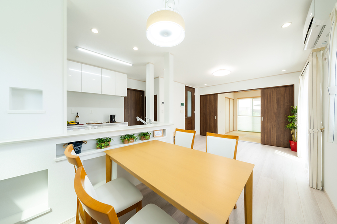 外気の影響を受けにくく、室内の温度を快適に保つ高性能断熱材や断熱窓を標準仕様。冷暖房に頼りすぎず、1年を通じて心地よい暮らしを実現します。